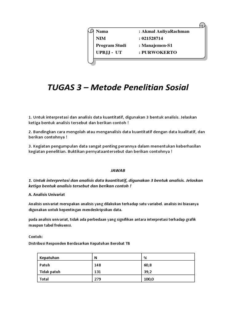 LATAR BELAKANG Pada dasarnya proses belajar mengajar merupakan proses. Jawaban Tugas 3 Metode Penelitian Sosial Ut. PENGUMUMAN TMK TUGAS 3 DEADLINE 19 JUNI.