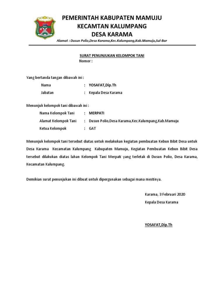 Surat Penunjukan Kelompok Tani Kbd Merpati